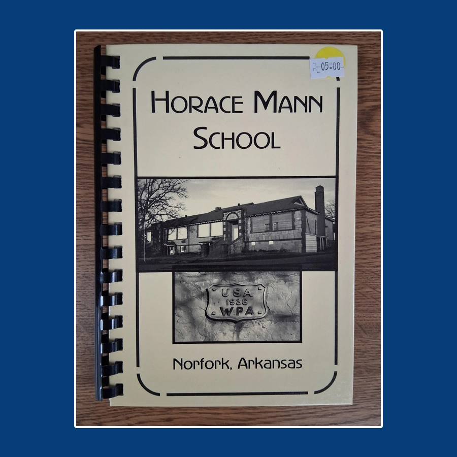 Horace Mann School Cookbook by various contributors (hard back, comb bound) contains a history of the Horace Mann School in Norfork and a collection of family recipes