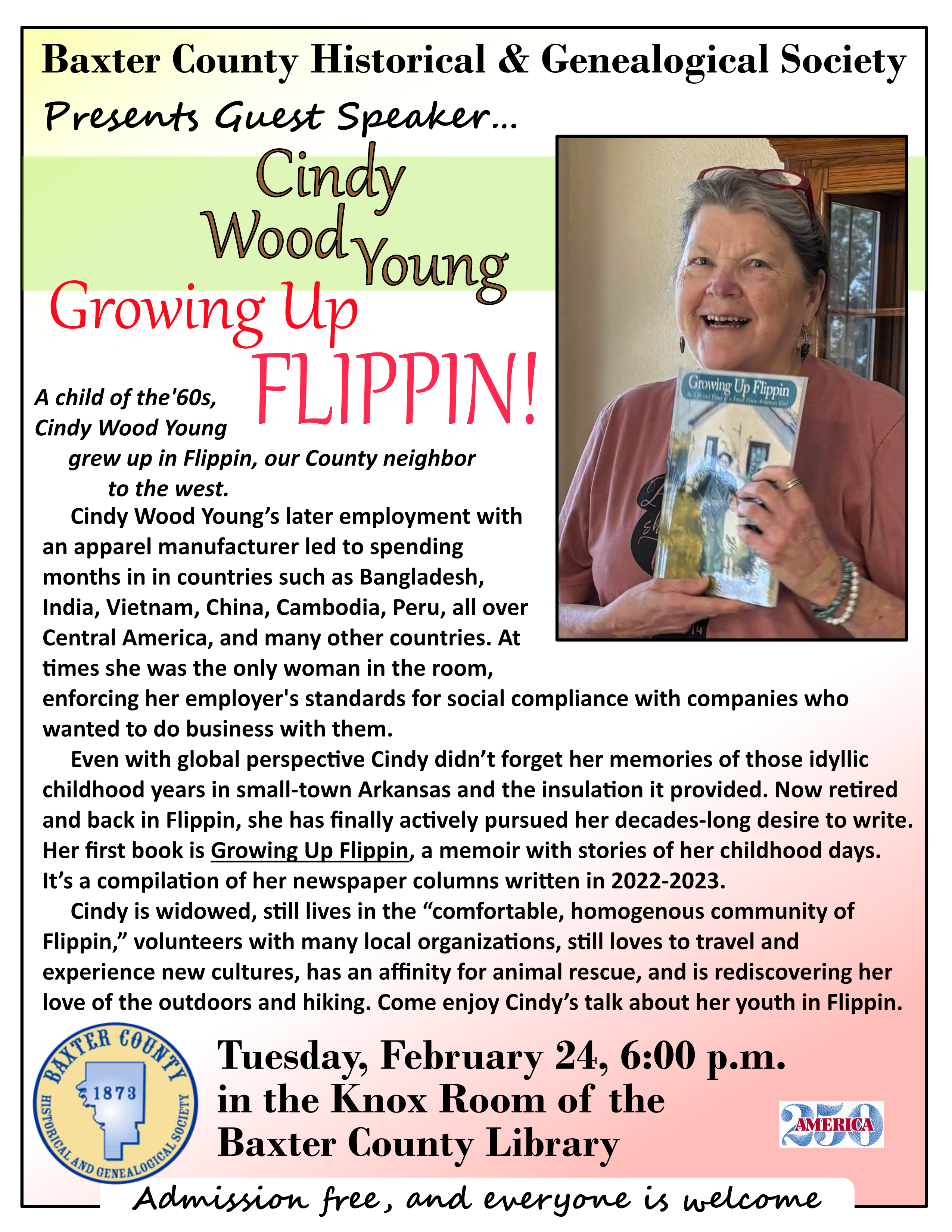 It's free and guests are always welcome! Cindy Wood Young is still our guest speaker.